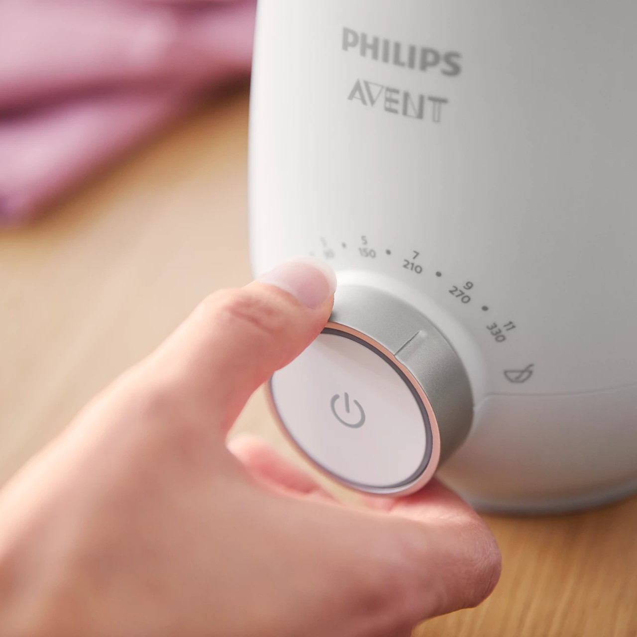 Praktischer Flaschenwärmer, der Milch oder Babynahrung schnell und gleichmässig auf Temperatur bringt. Mit intelligenter Steuerung, Auftaufunktion und Warmhaltemodus – ideal für stressfreie Mahlzeiten.