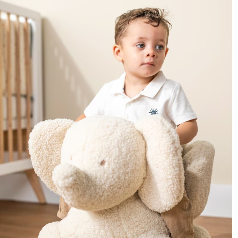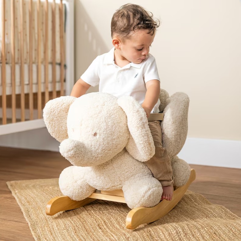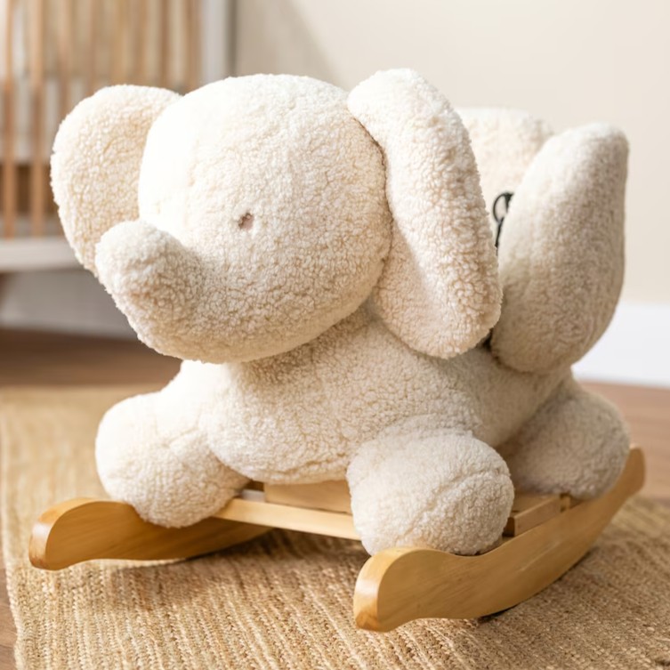Weiches Schaukeltier in Form eines Elefanten – ideal für die ersten Schaukelversuche. Bietet sicheren Halt und fördert Gleichgewicht und Körpergefühl.