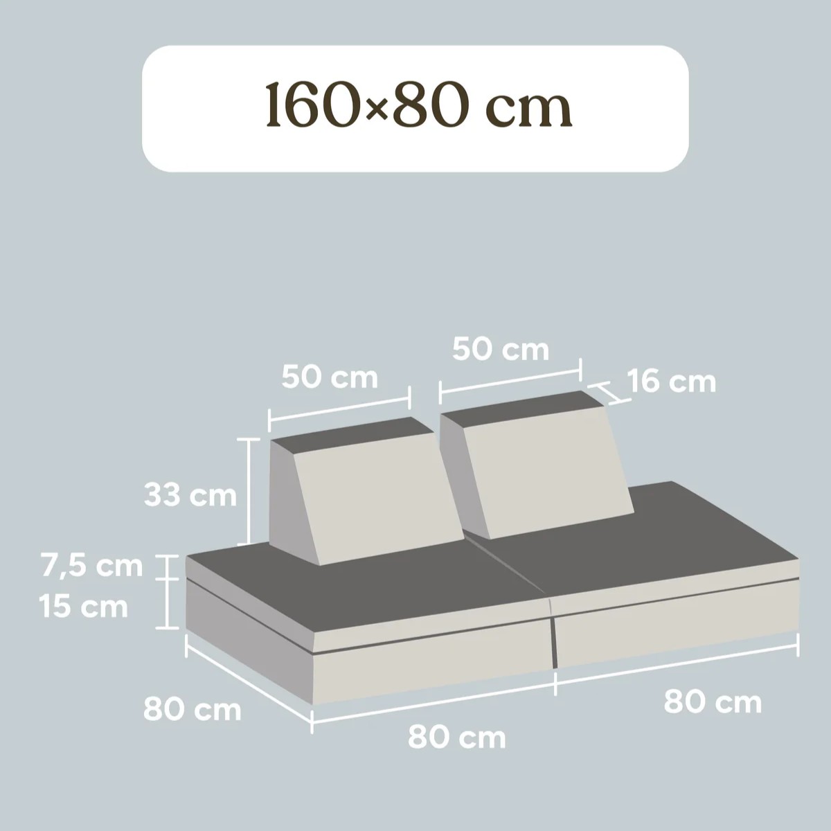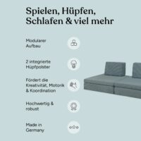 - Modularer Aufbau: Sofa-, Hüpf- und Gästebettfunktion