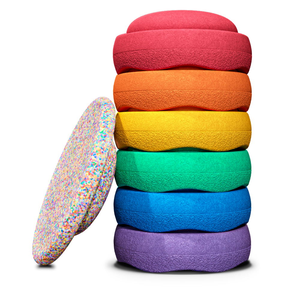Das 7-teilige Rainbow-Set von Stapelstein bringt Freude und Bewegung ins Kinderzimmer. Bestehend aus 6 farbigen Stapelsteinen und einem Balanceboard. Ideal zum sitzen, balancieren und spielen. Made in Germany, ungiftig, abriebfest, 100 % recycelbar. Vielseitig einsetzbar fördern sie das kreative Spielen deines Kindes.