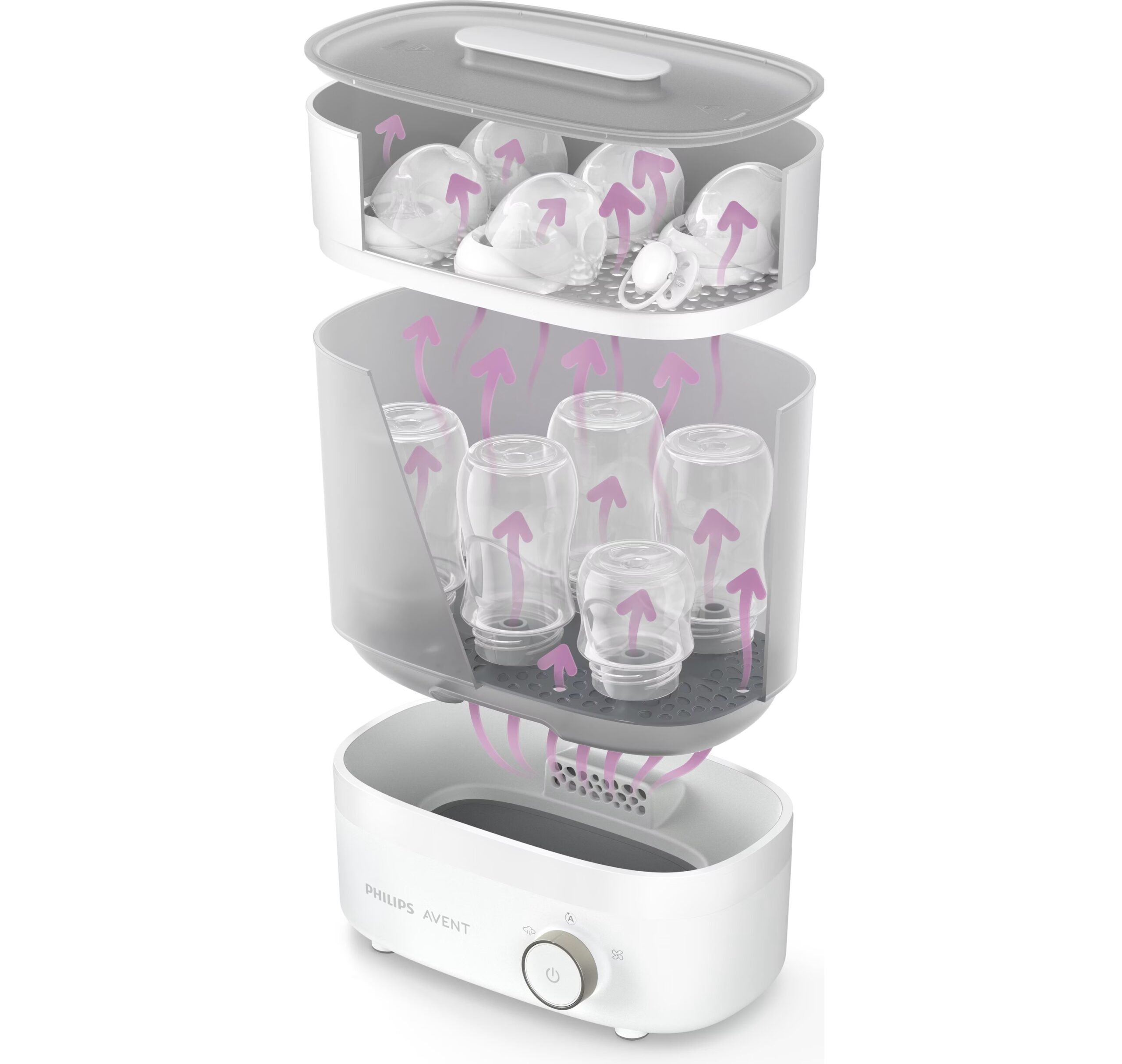 - Integrierte Abtropffunktion: Zum Sterilisieren, Trocknen und Aufbewahren